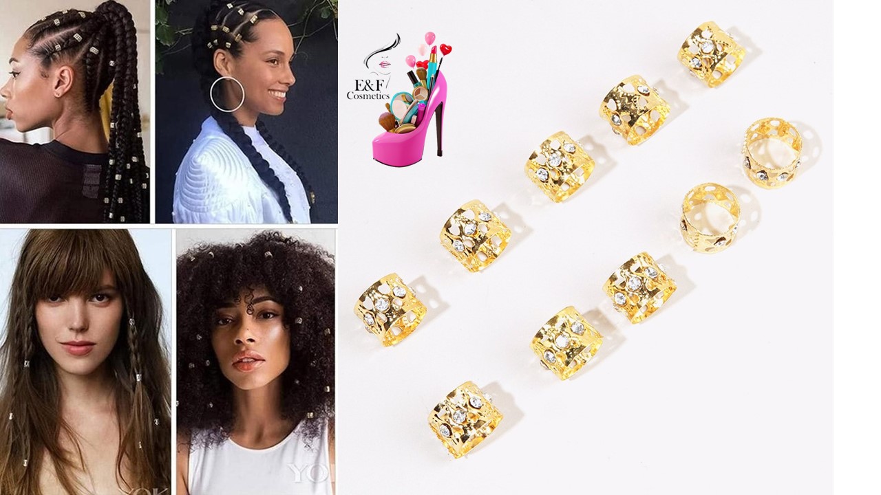 HERMOSOS ANILLOS DORADOS CON PIEDRAS BRILLANTES PARA TRENZAS