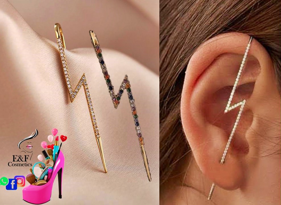 PRENDEDOR DE OIDO EN DISEÑO DE RAYO CON INCRUSTACIONES DE PIEDRAS PRECIOSAS DE FANTASIA, HERMOSO DISEÑO